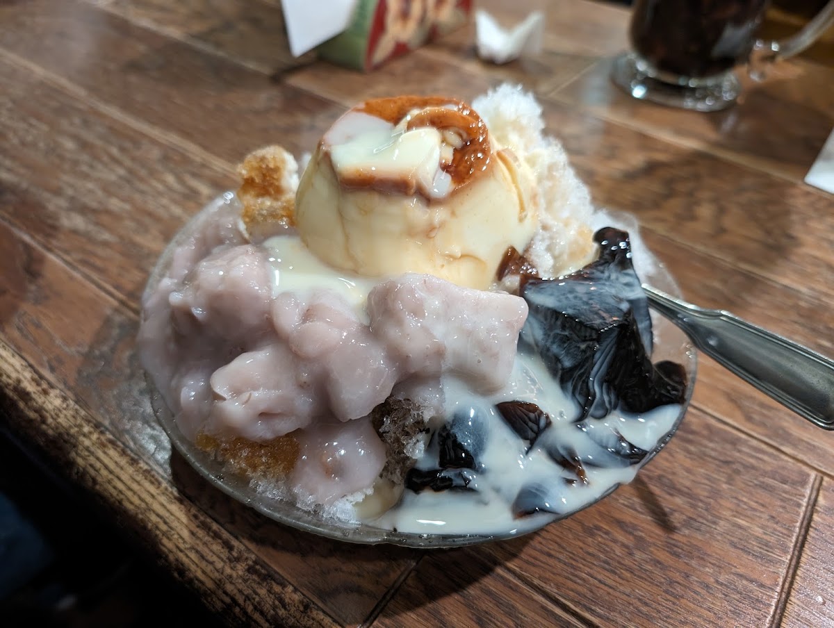 While on the hunt for delicious treats we stumbled upon Leisure Tea & Coffee! The interior has a old wooden inn in a small town vibe which feels warm and cozy! They offer an extensive menu of coffee and tea drinks, as well as desserts and light meals. Their portions are super generous and we didn't expect such a large size for the Peach Sundae! Their Caramel Pudding is so dang good! Overall, Leisure Tea & Coffee offers a great experience with its old-fashioned charm and delicious menu offerings. If you're looking for a cozy place to enjoy a good cup of coffee and some sweet treats or a light meal, we highly recommend stopping by!